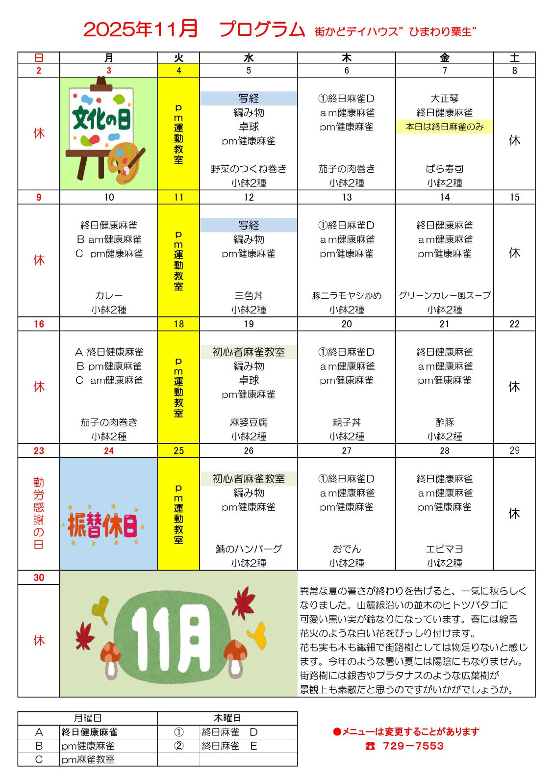 10.24 「ひまわり通信2025年11月号」&「11月プログラム」