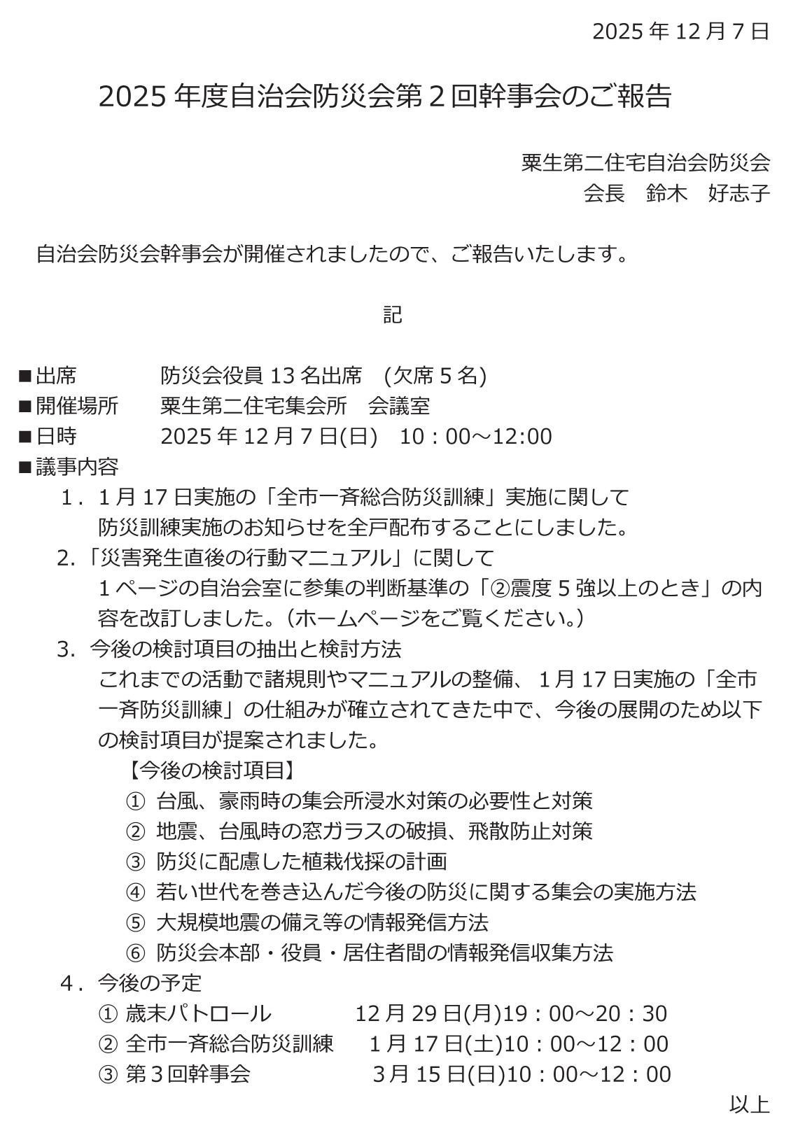 2025年度防災会第2回幹事会開催のご報告 拡大表示はここから